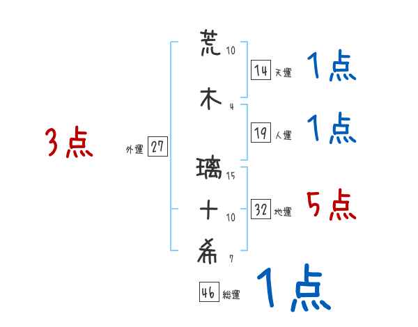 荒木璃十希さんの画数の鑑定結果