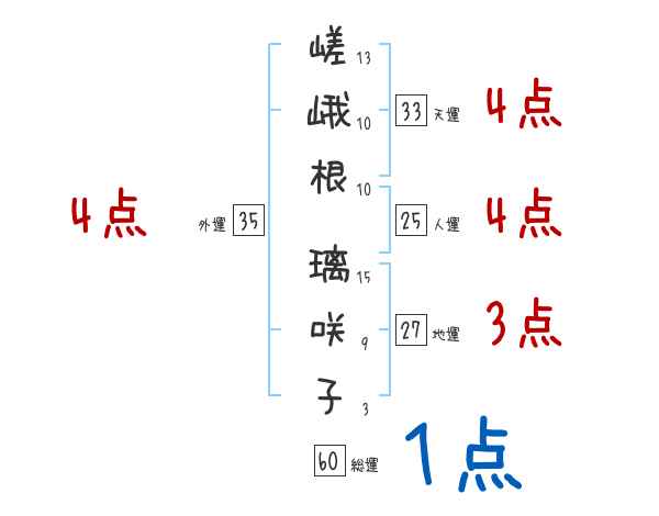 嵯峨根璃咲子さんの画数の鑑定結果