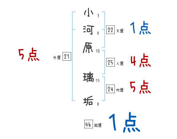 小河原璃垢さんの画数の鑑定結果