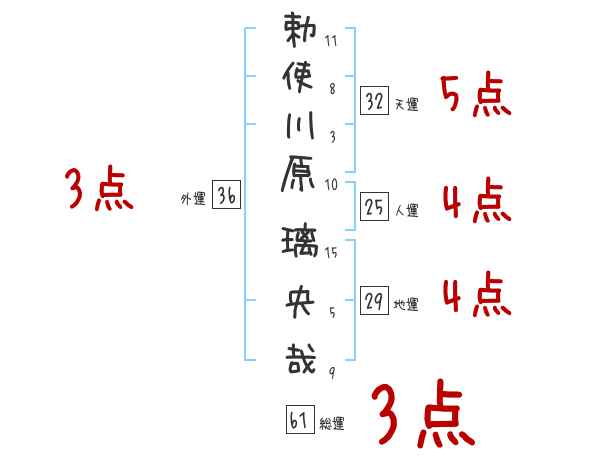 勅使川原璃央哉さんの画数の鑑定結果