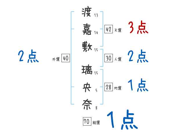 渡嘉敷璃央奈さんの画数の鑑定結果