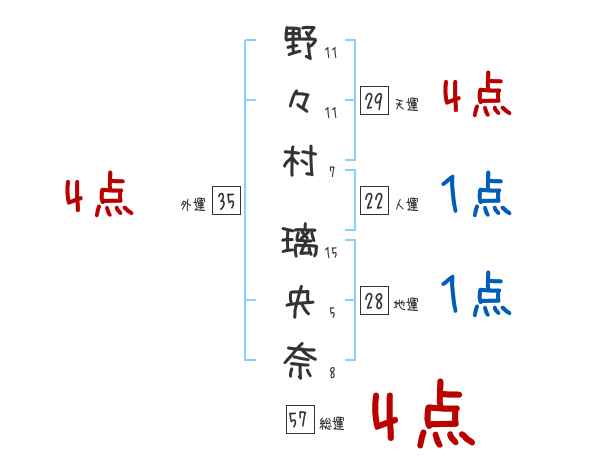 野々村璃央奈さんの画数の鑑定結果