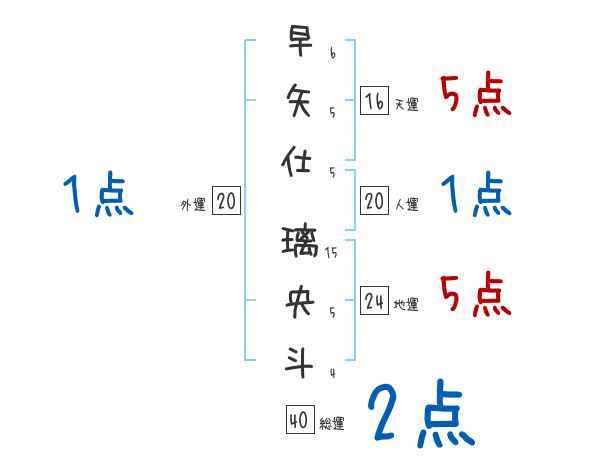 早矢仕璃央斗さんの画数の鑑定結果