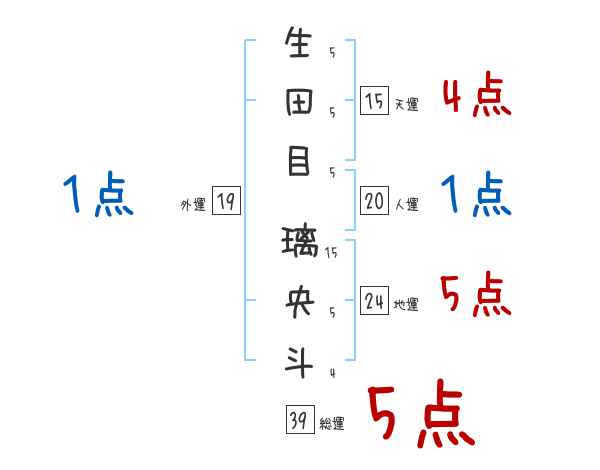 生田目璃央斗さんの画数の鑑定結果