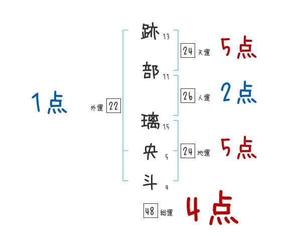 天運![]() | 跡部璃央斗さんの天運は24画の5つ星!家庭運が良く順調な人生。金運にも恵まれる。 家系が持つ宿命的な運勢を表します。祖先から受け継いだ苗字ですので自分の力が及びません。家柄を象徴します。 |