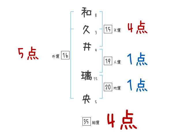 外運![]() | 和久井璃央さんの外運は16画の5つ星!人望が厚く大きく発展する。逆転成功が見える。 生活面を象徴する運勢です。外部から受ける影響力を表し、結婚運、家庭運や職場、環境への順応性を表します。 |