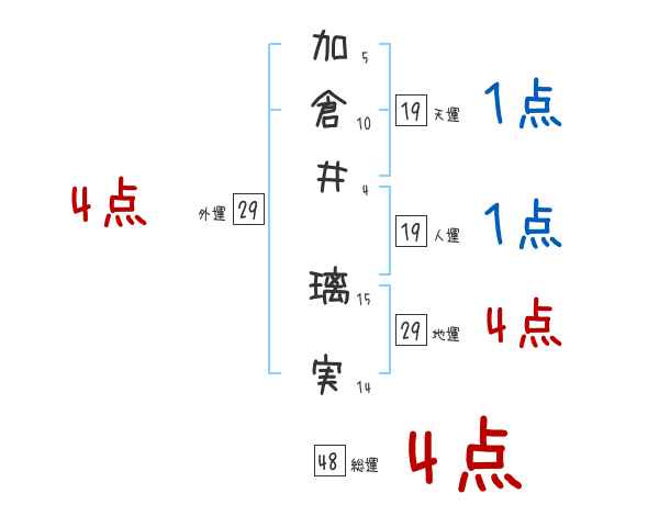 外運![]() | 加倉井璃実さんの外運は29画の4つ星!完全主義で才能がある。厳格な心の持ち主。 生活面を象徴する運勢です。外部から受ける影響力を表し、結婚運、家庭運や職場、環境への順応性を表します。 |