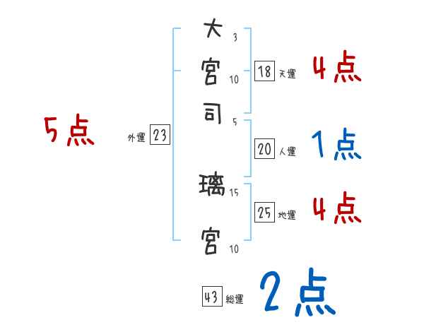 大宮司璃宮さんの画数の鑑定結果