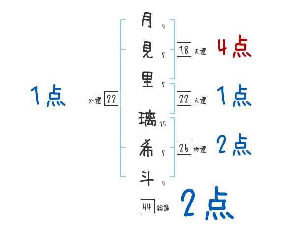 月見里璃希斗さんの画数の鑑定結果