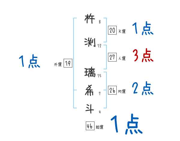 杵渕璃希斗さんの画数の鑑定結果