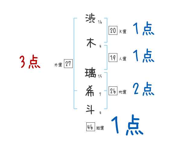 総運![]() | 渋木璃希斗さんの総運は46画の1つ星!迷走することが多く苦労するかも。目先のことにとらわれないように。 あなたの人生を表す1番重要な運勢です。生涯を通じて影響する総合運となり、主に50歳以降の晩年期に影響を及ぼします。 |