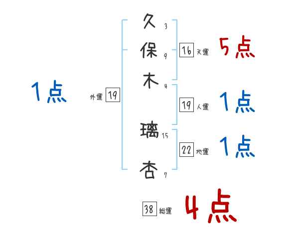 外運![]() | 久保木璃杏さんの外運は19画の1つ星!優れた才能を持ちますが、協調性が足りないことも。周りの人と協力する事を意識しましょう。 生活面を象徴する運勢です。外部から受ける影響力を表し、結婚運、家庭運や職場、環境への順応性を表します。 |