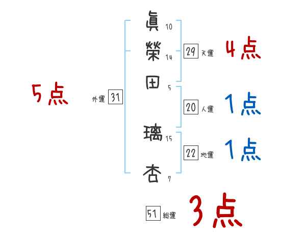 眞榮田璃杏さんの画数の鑑定結果