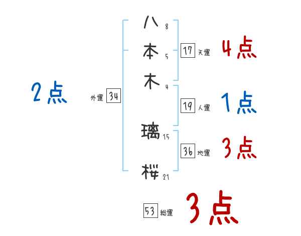 外運![]() | 八本木璃桜さんの外運は34画の2つ星!独創性に優れるが、自尊心が強く災難に注意しましょう。 生活面を象徴する運勢です。外部から受ける影響力を表し、結婚運、家庭運や職場、環境への順応性を表します。 |