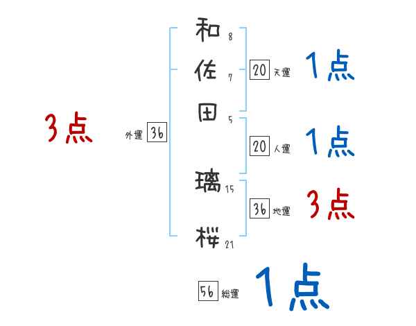 外運![]() | 和佐田璃桜さんの外運は36画の3つ星!先見性が豊かです。多少神経質で苦労することも。 生活面を象徴する運勢です。外部から受ける影響力を表し、結婚運、家庭運や職場、環境への順応性を表します。 |