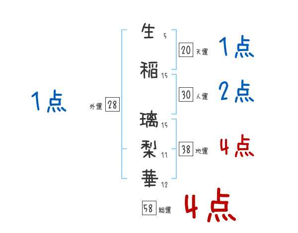 生稲璃梨華さんの画数の鑑定結果