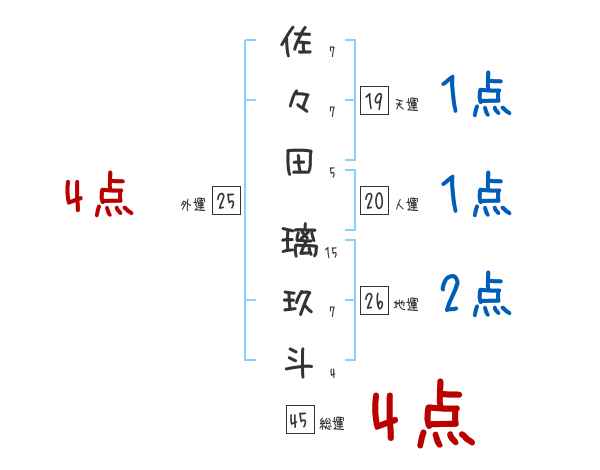 佐々田璃玖斗さんの画数の鑑定結果