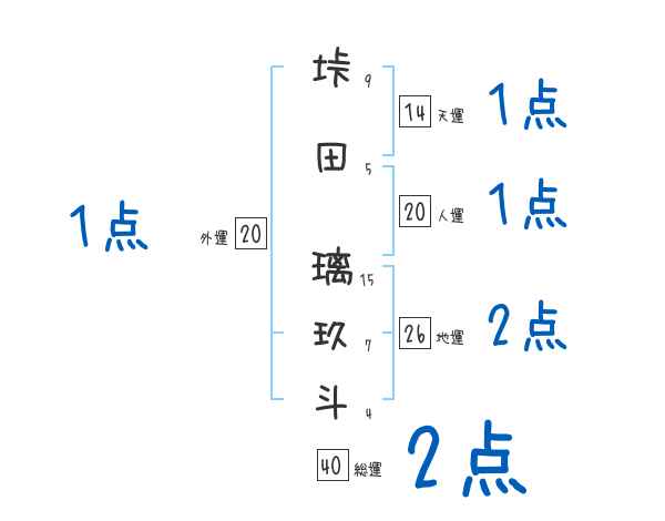 垰田璃玖斗さんの画数の鑑定結果