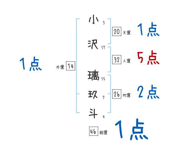 小沢璃玖斗さんの画数の鑑定結果