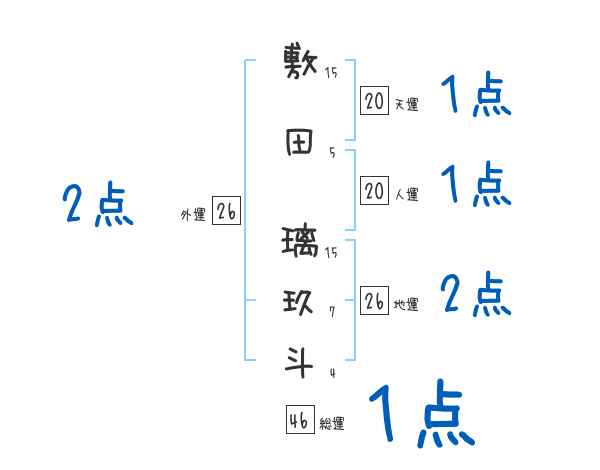 敷田璃玖斗さんの画数の鑑定結果