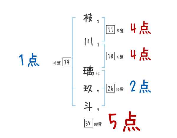 枝川璃玖斗さんの画数の鑑定結果