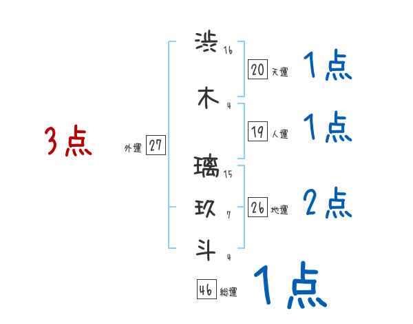 渋木璃玖斗さんの画数の鑑定結果