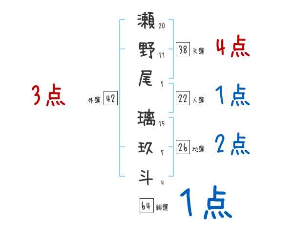 瀬野尾璃玖斗さんの画数の鑑定結果