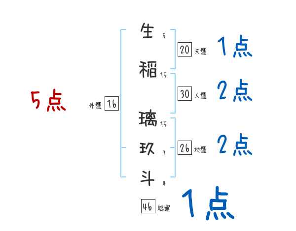 地運![]() | 生稲璃玖斗さんの地運は26画の2つ星!波瀾万丈かも。信頼できる人を大事にしましょう。 個性を表す基礎的な運勢です。性格形成や対人関係、行動力など家庭環境に影響されます。主に誕生してから20歳くらいまでの若年期の運勢を表します。 |