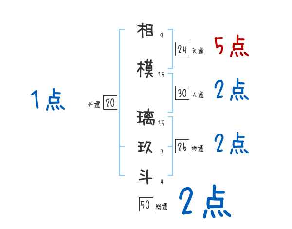 相模璃玖斗さんの画数の鑑定結果