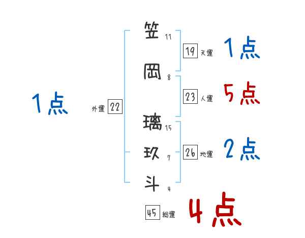 笠岡璃玖斗さんの画数の鑑定結果