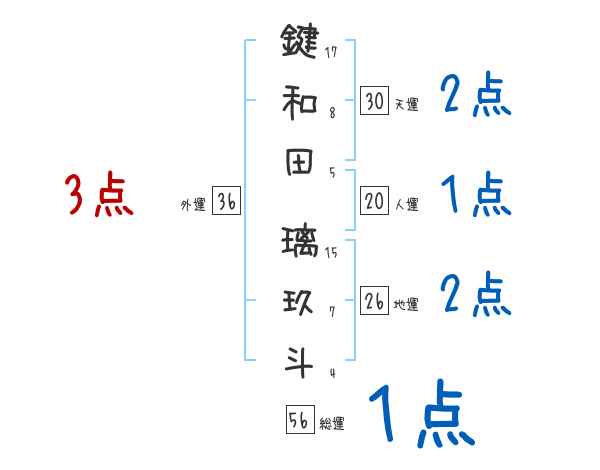鍵和田璃玖斗さんの画数の鑑定結果