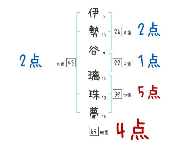 伊勢谷璃珠夢さんの画数の鑑定結果