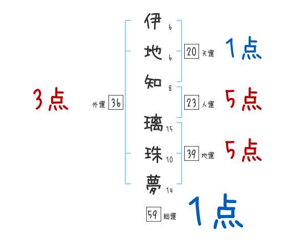 伊地知璃珠夢さんの画数の鑑定結果