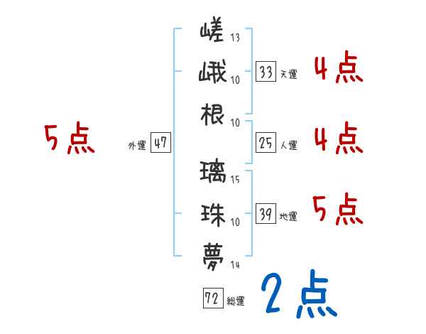 嵯峨根璃珠夢さんの画数の鑑定結果