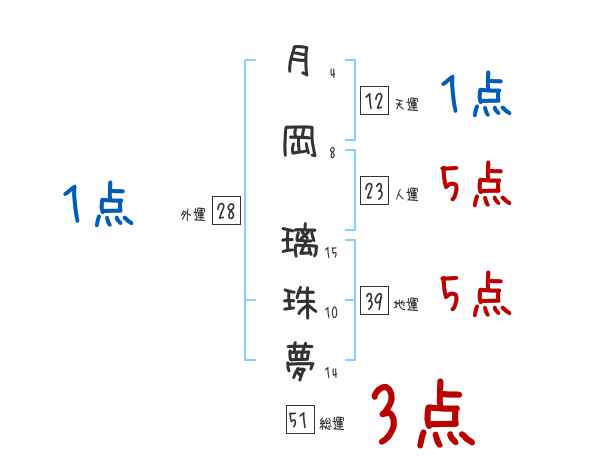 総運![]() | 月岡璃珠夢さんの総運は51画の3つ星!変化が激しく、危険に注意。堅実な性格。 あなたの人生を表す1番重要な運勢です。生涯を通じて影響する総合運となり、主に50歳以降の晩年期に影響を及ぼします。 |