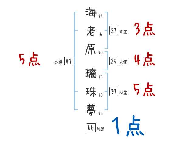 海老原璃珠夢さんの画数の鑑定結果