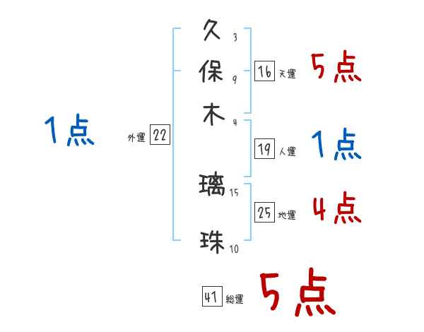 総運![]() | 久保木璃珠さんの総運は41画の5つ星!大志を抱き、目標に向かって実力を発揮し達成する。温和な性格。 あなたの人生を表す1番重要な運勢です。生涯を通じて影響する総合運となり、主に50歳以降の晩年期に影響を及ぼします。 |