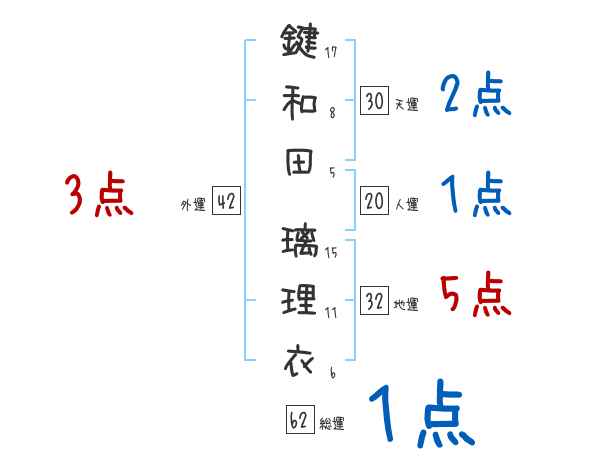 鍵和田璃理衣さんの画数の鑑定結果