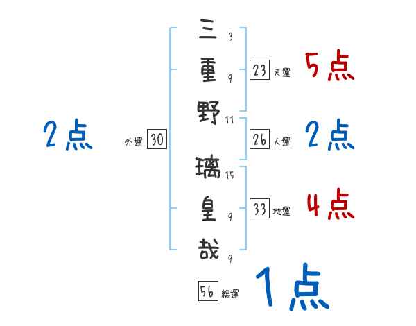 三重野璃皇哉さんの画数の鑑定結果
