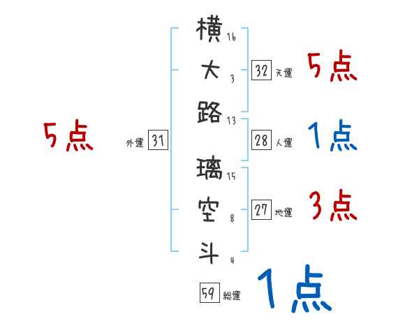 横大路璃空斗さんの画数の鑑定結果