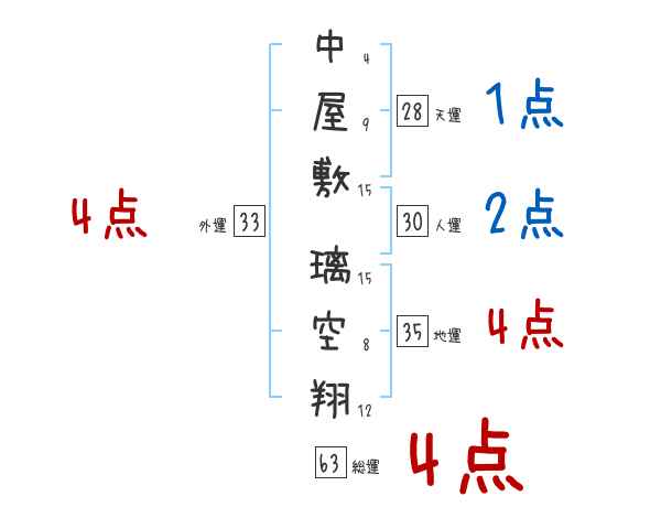中屋敷璃空翔さんの画数の鑑定結果