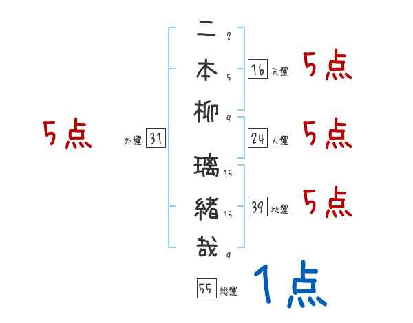 二本柳璃緒哉さんの画数の鑑定結果