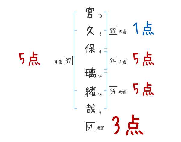 宮久保璃緒哉さんの画数の鑑定結果