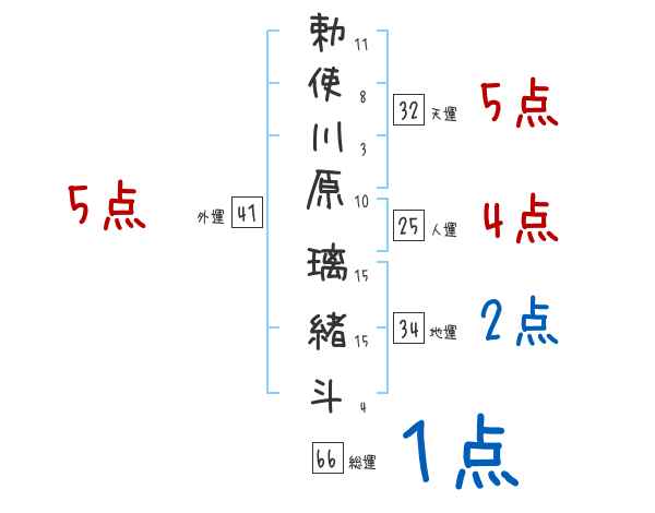 勅使川原璃緒斗さんの総運は66画の1つ星