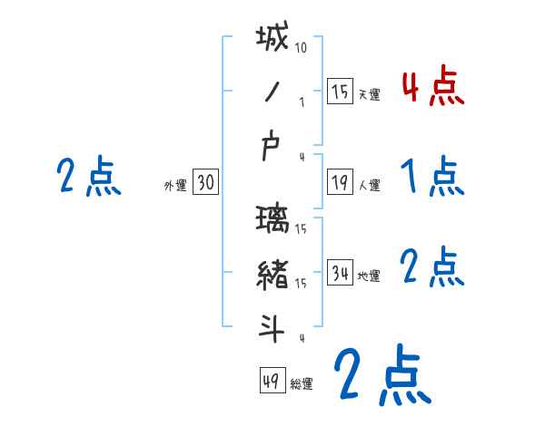 城ノ戸璃緒斗さんの画数の鑑定結果