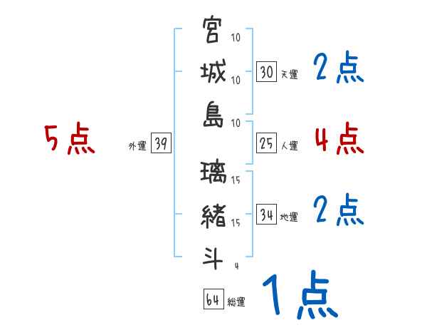 宮城島璃緒斗さんの画数の鑑定結果