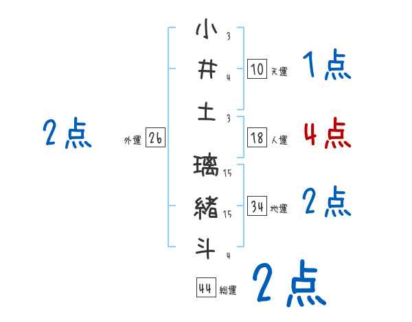 小井土璃緒斗さんの画数の鑑定結果