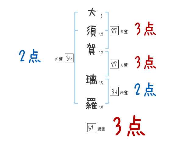 大須賀璃羅さんの画数の鑑定結果