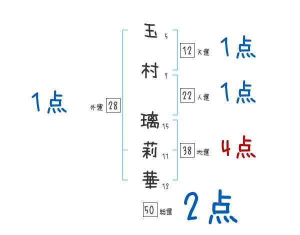 玉村璃莉華さんの画数の鑑定結果