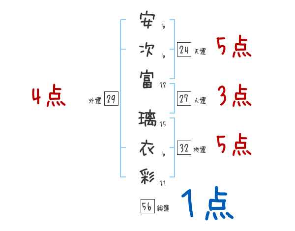 安次富璃衣彩さんの画数の鑑定結果
